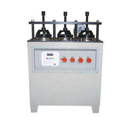 3、把被測試件放在透水盤環(huán)形膠圈上,再把試件壓板放在被測試件上,擰緊螺桿。