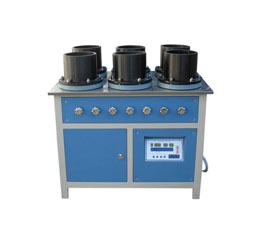 a、灌水:將注水咀的螺帽擰下,同時打開各個截門,把漏斗置于注水咀上,灌水于蓄水罐待其灌滿,并要求試模底盤內也充滿水(作用在于排除管路系統(tǒng)內的空氣)這時可將六個通向試模的截門關上。